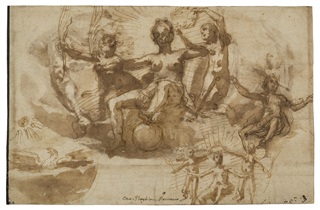 Häufig sind dies Entwürfe für die Ausmalung von Kirchen. Manche Zeichnungen aber charakterisieren typisch menschliche Verhaltensweisen, etwa bei einem stolzen Schauspieler, bei einer betrügerischen Sternendeutung mittels Fernrohr oder dem zufriedenen Dasein von drei Mönchen. Die Aktzeichnung war wichtig für die Darstellung von mythologischen oder christlichen Themen und diente als Beweis zeichnerischen Könnens. Da gibt es vielfigurige Blätter, solche mit weiblichen Akten oder stehenden männlichen Akten, aber auch einen ausdrucksvollen, sitzenden männlichen Akt von Bernini oder eine liegende Aktfigur, die an einen toten Christus erinnert.
